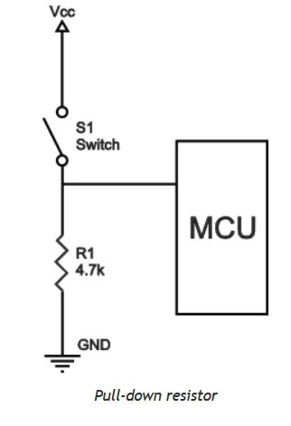 - Pull-down Resistor: ดึงขา Input ลงไปที่ GND