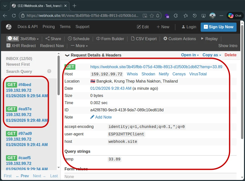 - ในส่วนของ HTTPS (SSL) ESP32 รุ่นใหม่ๆ จัดการได้ดีครับ แต่บางครั้งถ้ายิงไม่ผ่าน อาจจะต้องมีการ Bypass Certificate แต่สำหรับ Webhook.site ปกติจะยิงผ่านได้เลยครับ