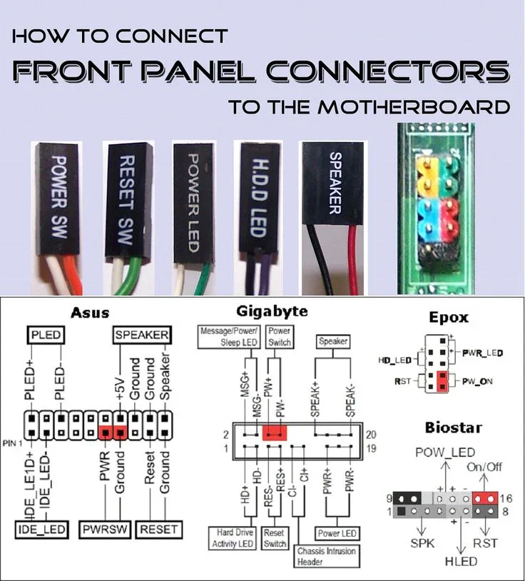 สายกลุ่มนี้คือสายสัญญาณจากหน้าเคสที่ทำหน้าที่สั่งการเครื่องคอมพิวเตอร์ ถือเป็นจุดที่ “วัดใจ” ช่างมือใหม่มากที่สุด