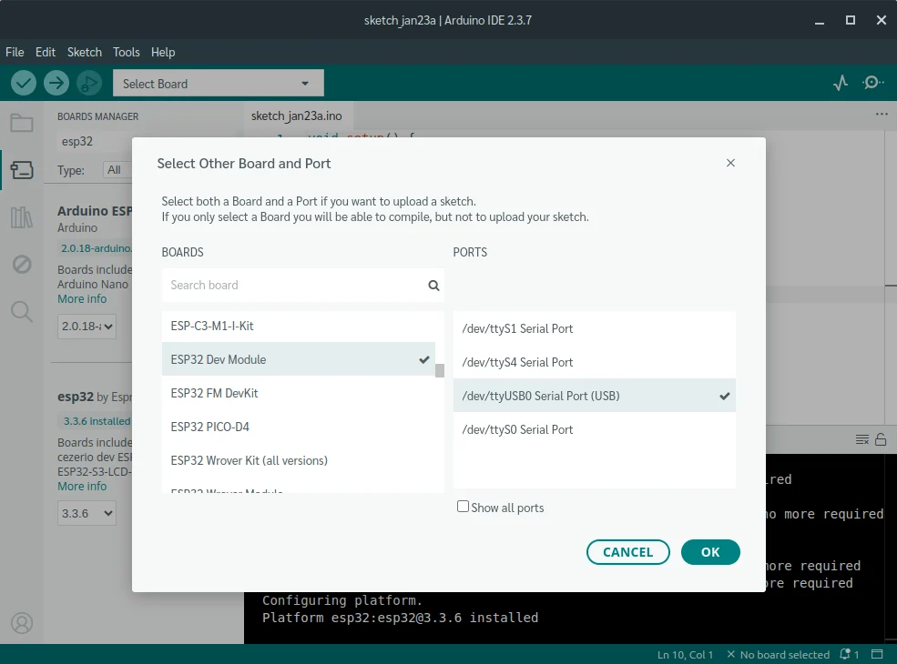ขั้นตอนที่ 4: ติดตั้งแพลตฟอร์ม ESP32